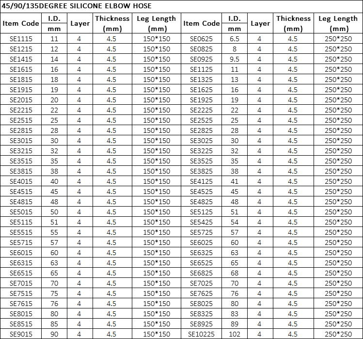 45/90/135DEGREE SILICONE ELBOW HOSE: